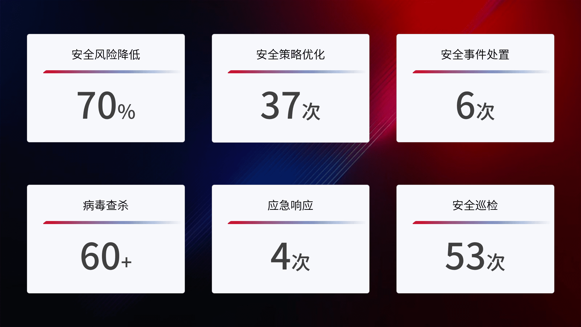 综合报告与文档服务: 定期提供安全事件处置报告、、、、周/季度总结报告和年度总结报告;详尽的文档服务可帮助客户了解网络安全状况,,支持决策制定和流程优化。。。